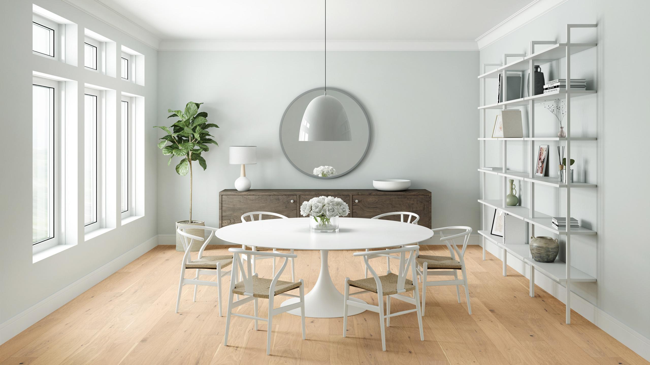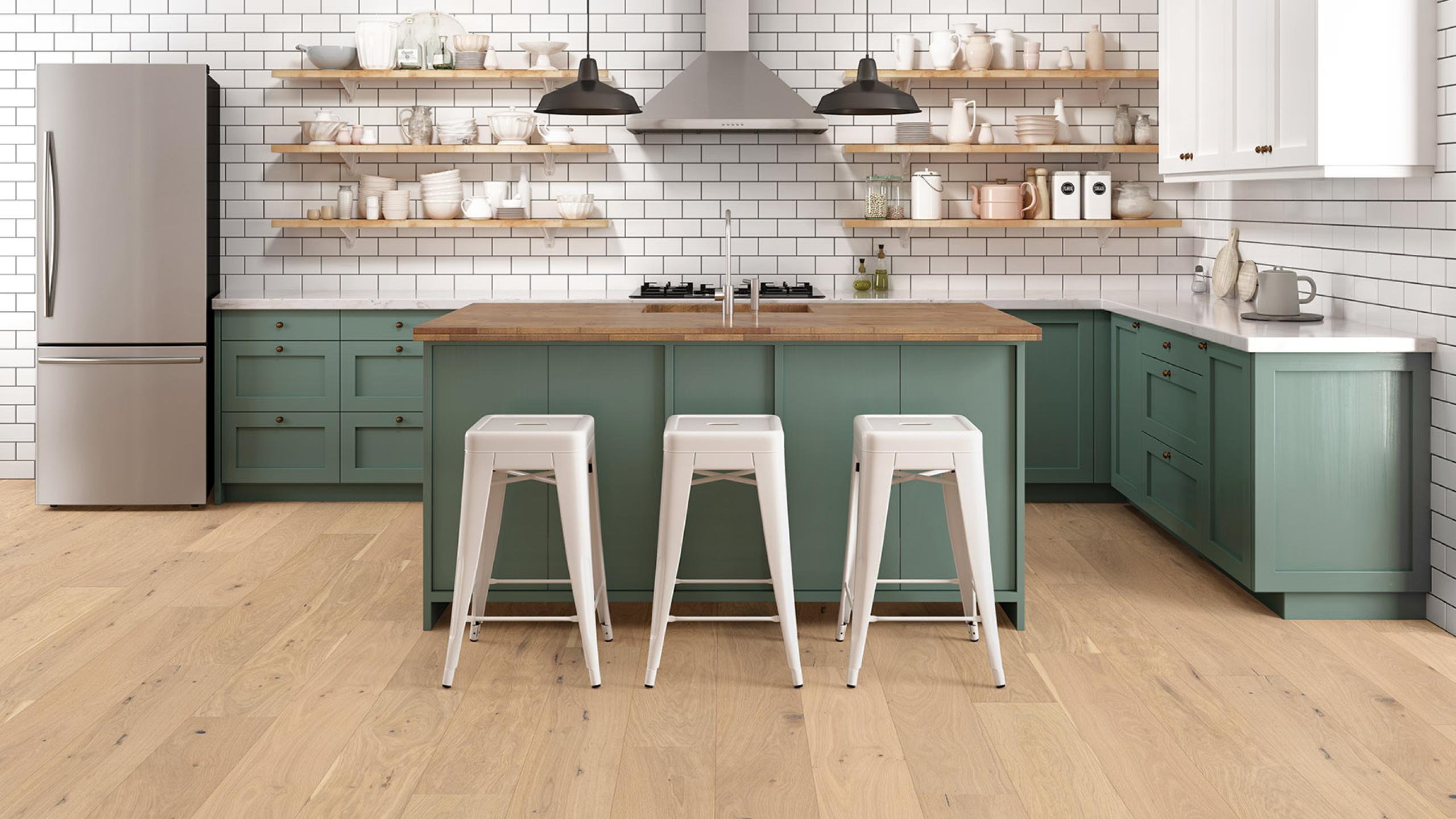 Achieve a luxurious and generous 7½" wide-plank effect at a very affordable price with Tempo. This rustic-grade hardwood in oak or hickory features brushed veneer, lively grain patterns and rich color variations. Some designs from the collection include additional touches, such as filled knots and custom stain treatments.