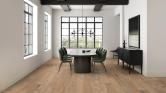 Bohemia is a land of free-spirited expression, love of nature, and lives large - and these floors are made to measure. Very large boards, oak veneer, contrasting accents of filled knots and cracks, and a low luster polyurethane finish create a rich environment of natural beauty.
