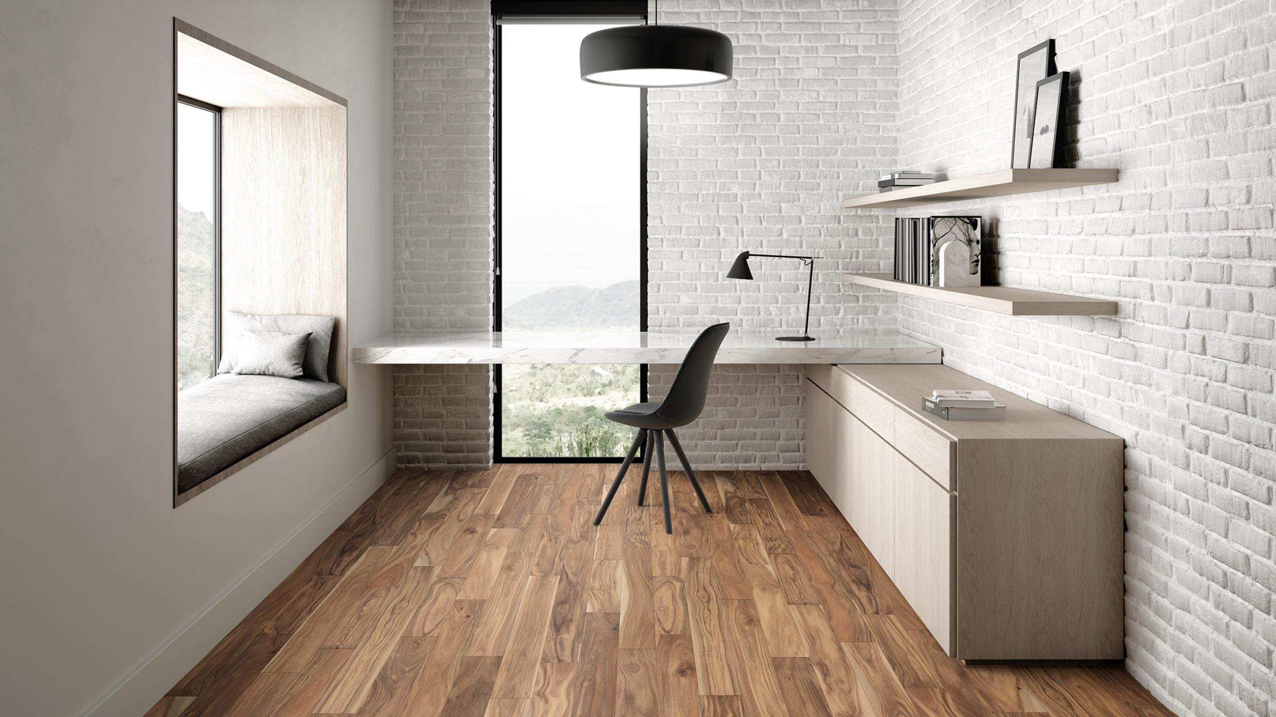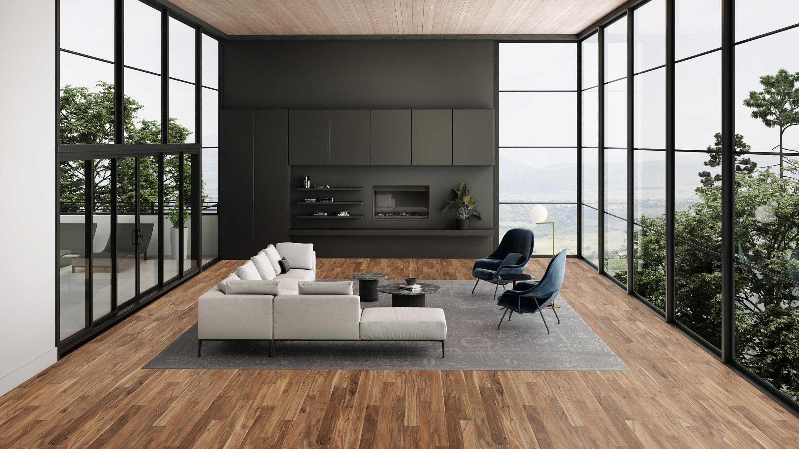 Understated elegance informs these classically beautiful floors, designed to harmonize with their surroundings while celebrating the ingrained character of the hardwood. Medium width board in assorted lengths and species, brushed surface treatments.