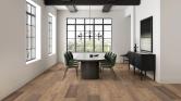 A quiet command of presence. With 10 ¼" wide boards reaching up to 86" in length, the Regal Collection establishes a sense of scale that is immediate yet unforced. The ultra matte finish, subdued to the eye, allows the natural character of the wood to speak without embellishment; measured, composed, and assured. This is flooring for interiors that carries weight, not through opulence, but through intention.